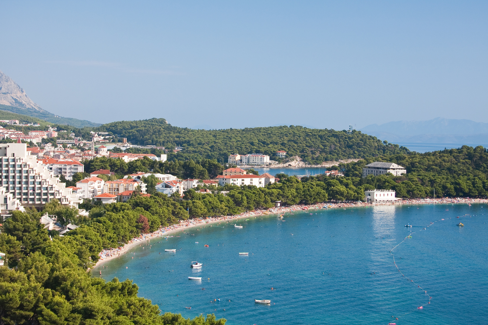 Donja Luka Beach in Makarska is the city’s main beach, stretching 850 meters northwest of the town center along the picturesque Donja Luka Bay . This fine pebble beach stretches for more than 1 km and is lapped by clear, turquoise waters . The beach is located on the north side of the rocky Sveti Petar peninsula , surrounded by tall pine trees that provide natural shade—especially welcome on hot summer days.