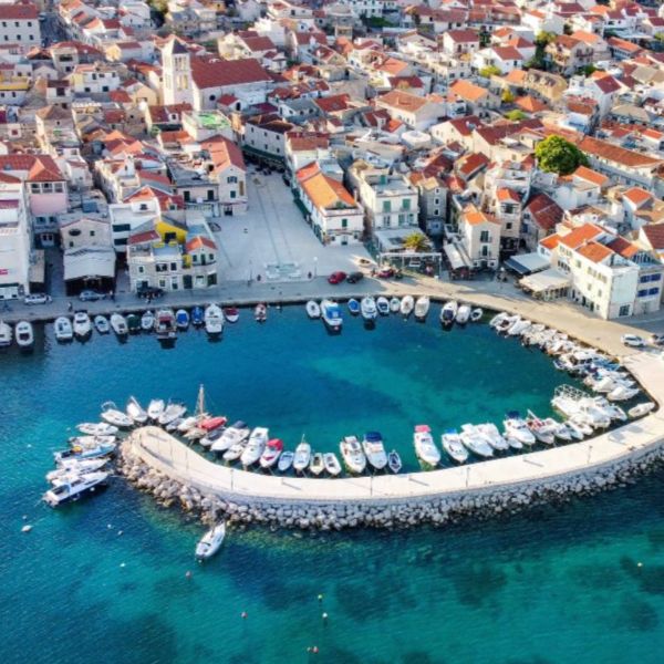 Life in the small town pulsates on and around the mile-long promenade which surrounds the beautiful marina situated in the center. The lively promenade is characterized by a variety of shops, restaurants and cafés. Here you can take delight in the typical Dalmatian cuisine offered in the restaurants and hotels and the excellent wines from the region. Fresh fish and delicious seafood are without a doubt found on the restaurant menus here, and you will additionally find many places serving other foods, such as Italian cuisine.