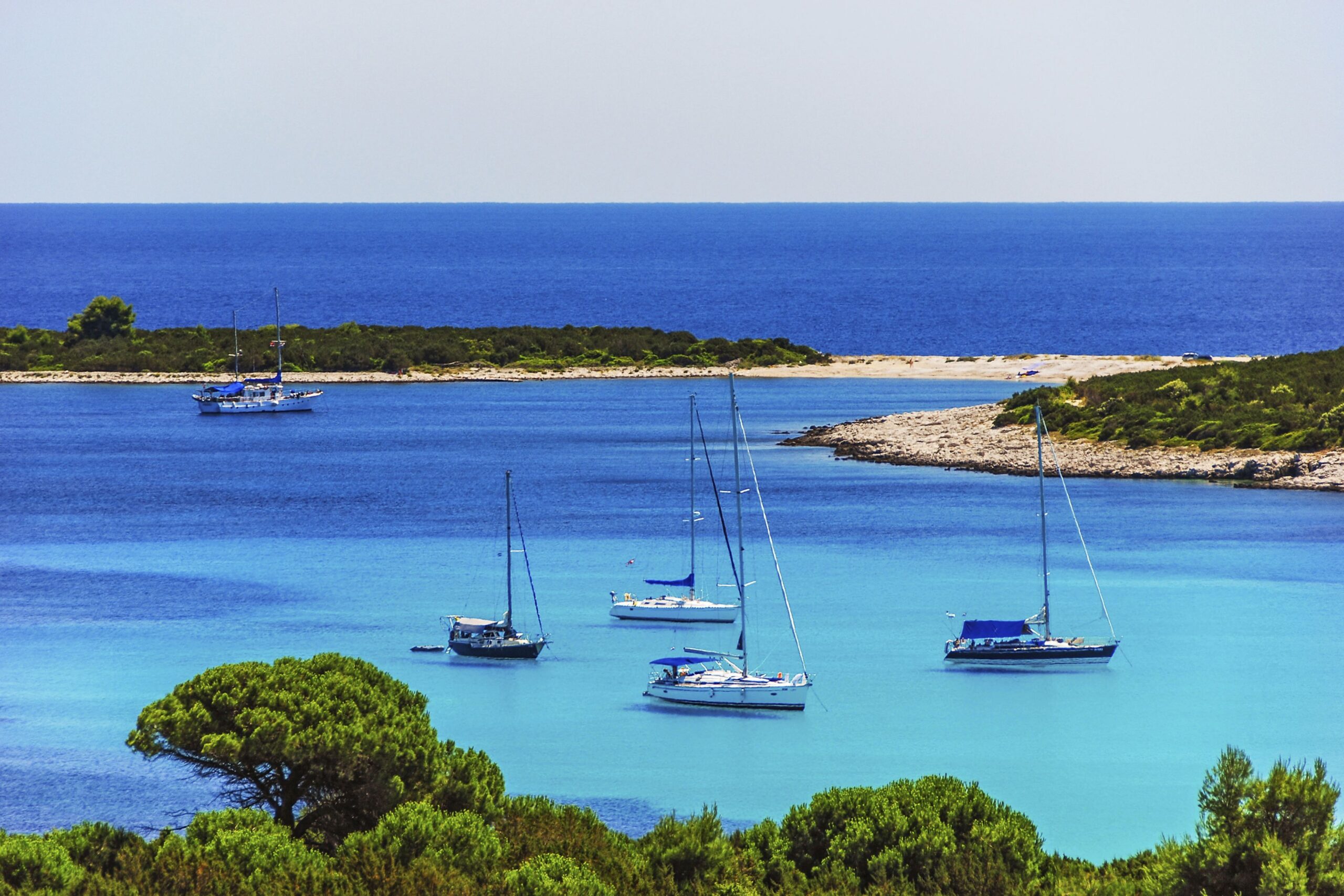 In the idyllic Sakarun Bay, 3 km southeast of Veli Rat, there is the 800 m long sandy beach of the same name, which is very popular with holidaymakers and locals. The shore slopes very gently into the sea, so that you can go very far into the sea without losing your footing – ideal especially for young bathers. The sandy beach with some pebble sections is unique on the island of Dugi Otok, which is otherwise characterized by steep rocky coasts.