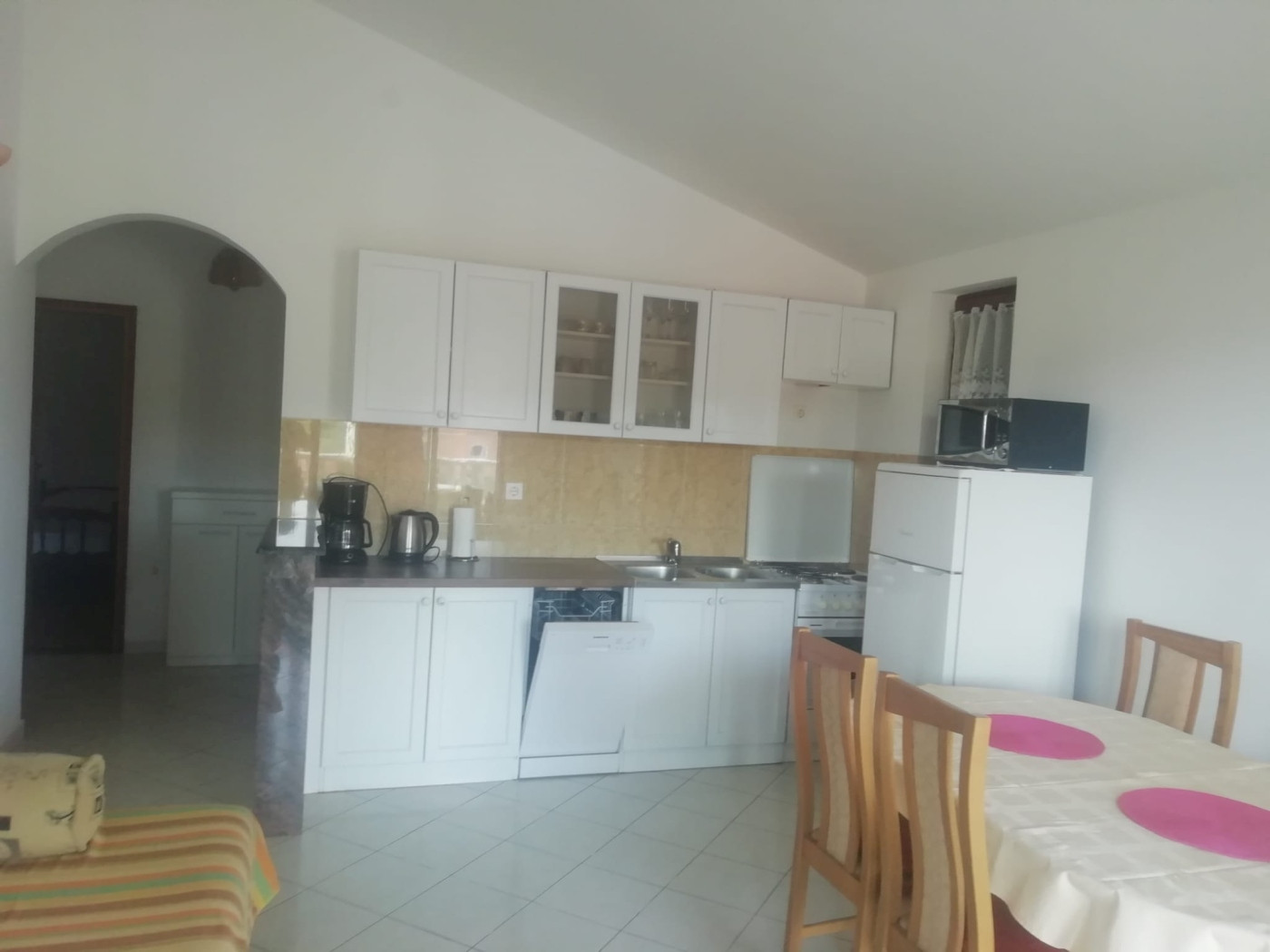 This charming apartment is located in an exceptionally good location – just about 30 metres from the crystal-clear sea. After just a few steps, you will reach the beach, where four comfortable loungers and two sun umbrellas are permanently reserved for each apartment. These are exclusively available to you and do not need to be shared with anyone. Perfect conditions for relaxed bathing days under the Croatian sun.