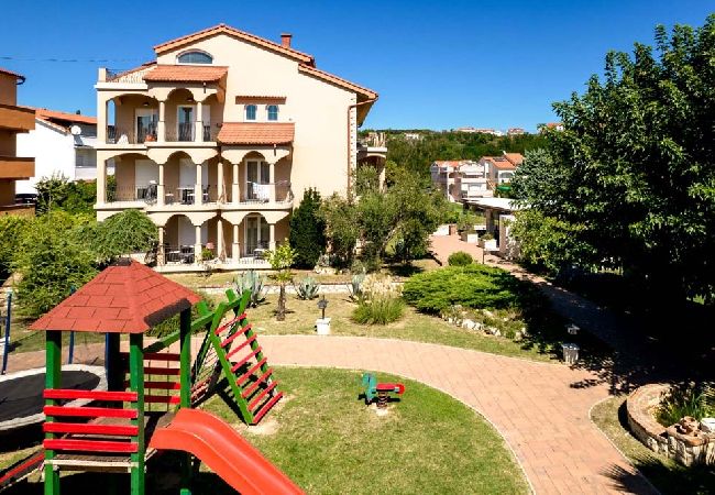 The cosy holiday apartment on the island of Rab in the popular holiday resort of Lopar offers the perfect retreat on 40 m² for 2 to 4 guests. It features a bedroom with a double bed, a living area with a sofa bed, a fully equipped kitchenette and a modern bathroom. Two covered balconies invite you to relax and provide space for outdoor meals. Air conditioning, WiFi and satellite TV ensure additional comfort, a baby cot is available on request. Pets are not permitted.