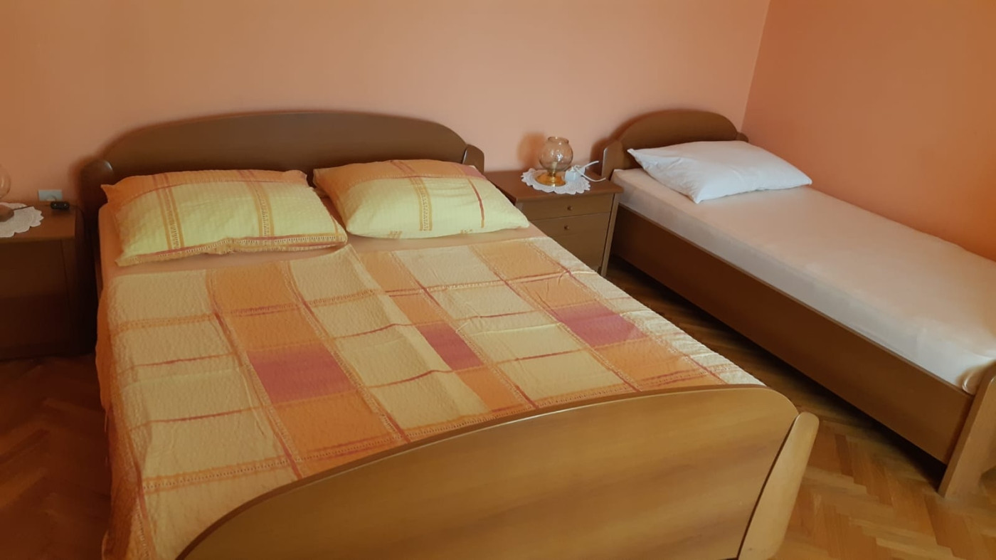 This bright and well-maintained holiday apartment in Lopar on the island of Rab is ideal for couples, families or small travel groups who want to spend their holiday in the immediate vicinity of the sea. The apartment offers space for up to four people (maximum three adults) and convinces with a thoughtful room layout, a spacious terrace and a beautiful view of the beach and sea.