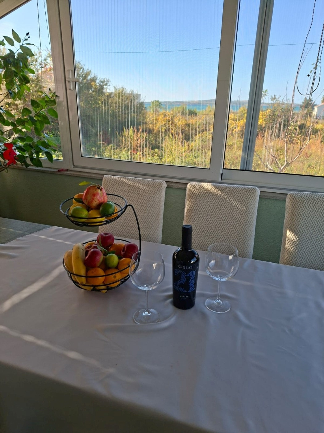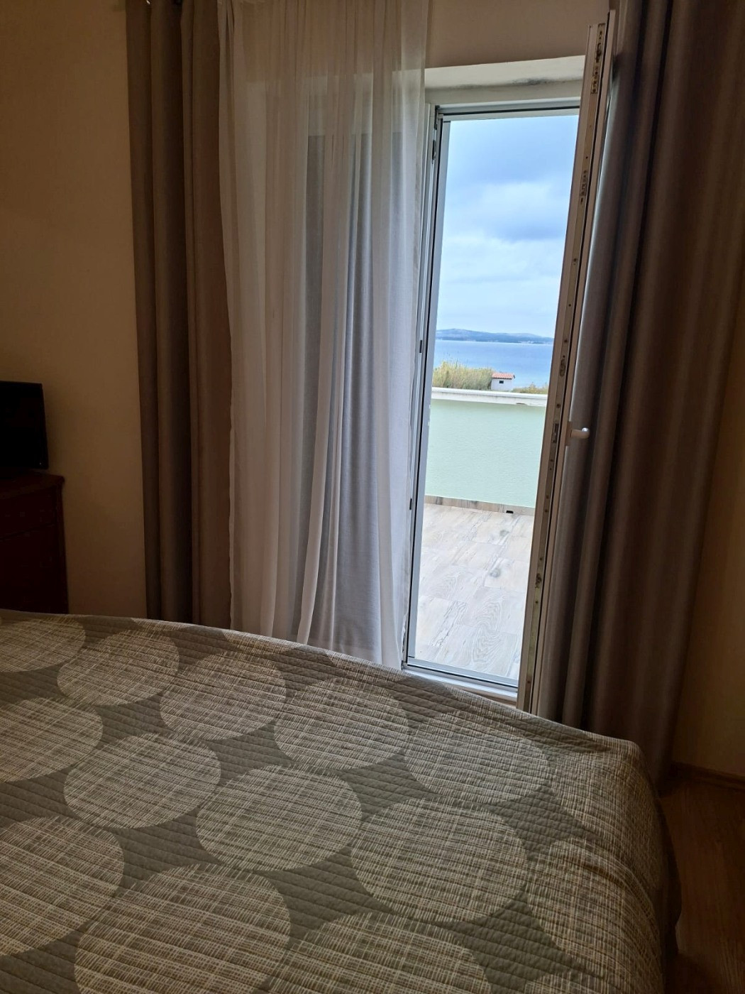 This spacious holiday home in Privlaka offers ideal conditions for a relaxing holiday with family or friends. The accommodation features four comfortable bedrooms, a fully equipped kitchen, two bathrooms, an additional separate utility room, and a large, air-conditioned and covered terrace with a beautiful sea view. With space for up to eight adults and two to three children, the house offers an above-average level of living and holiday quality.