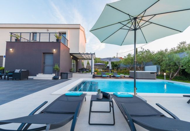 Casa de vacaciones moderna directamente en el mar con piscina climatizada y jacuzzi en Pašman