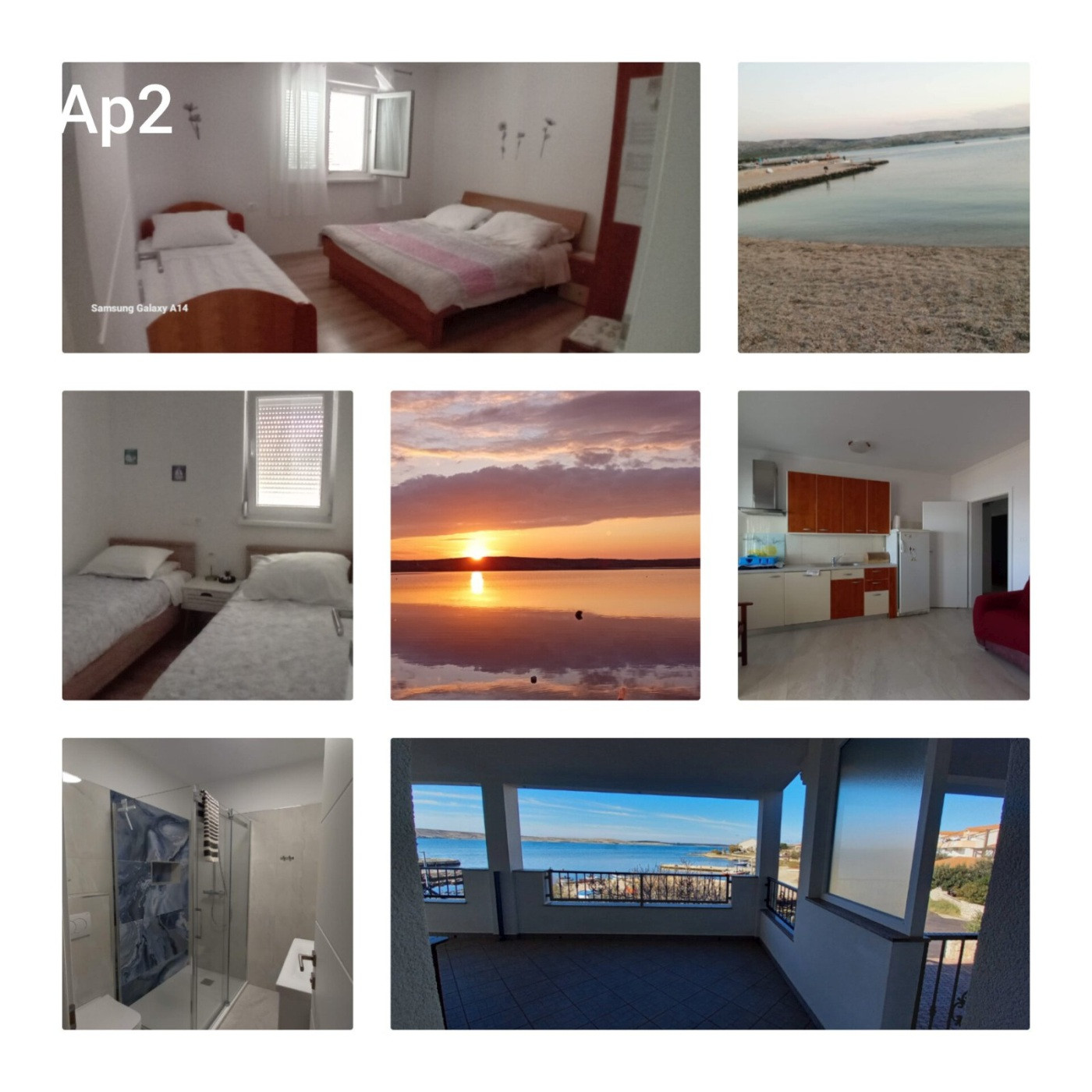 Cet appartement moderne sur l'île de Pag offre un espace confortable de 55 m² pour jusqu'à cinq personnes. Il dispose de deux chambres, d'une salle de bain, d'un salon confortable avec un canapé-lit et d'une cuisine entièrement équipée avec une cuisinière à gaz, un lave-vaisselle et tous les ustensiles de cuisine. La climatisation, la télévision par satellite et le Wi-Fi assurent un confort moderne, tandis que la terrasse spacieuse avec vue sur la mer invite à la détente.