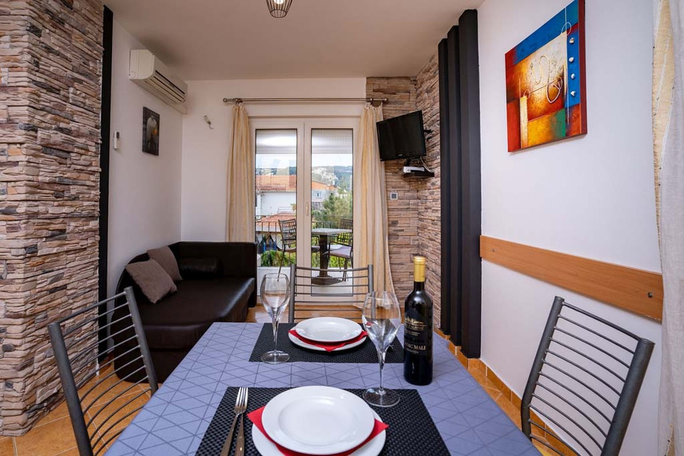 Ce charmant appartement de vacances à Lopar sur l'île populaire de Rab est l'endroit parfait pour des vacances de baignade détendues près de la mer. L'appartement peut accueillir jusqu'à quatre personnes (maximum deux adultes) et convainc par sa répartition compacte et réfléchie, ainsi que sa vue magnifique sur la mer.