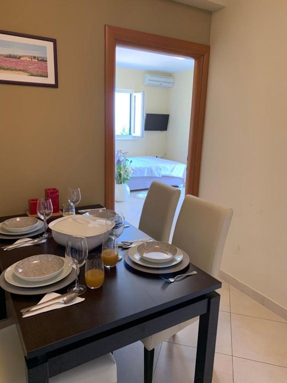 L'appartement dispose de deux chambres : La première chambre est équipée d'un lit double, d'une armoire et de tables de chevet, la deuxième chambre offre un lit double, un canapé-lit, la télévision par satellite, la climatisation et un miroir. Un lit de bébé n'est pas disponible, les petits chiens jusqu'à 10 kg sont les bienvenus.