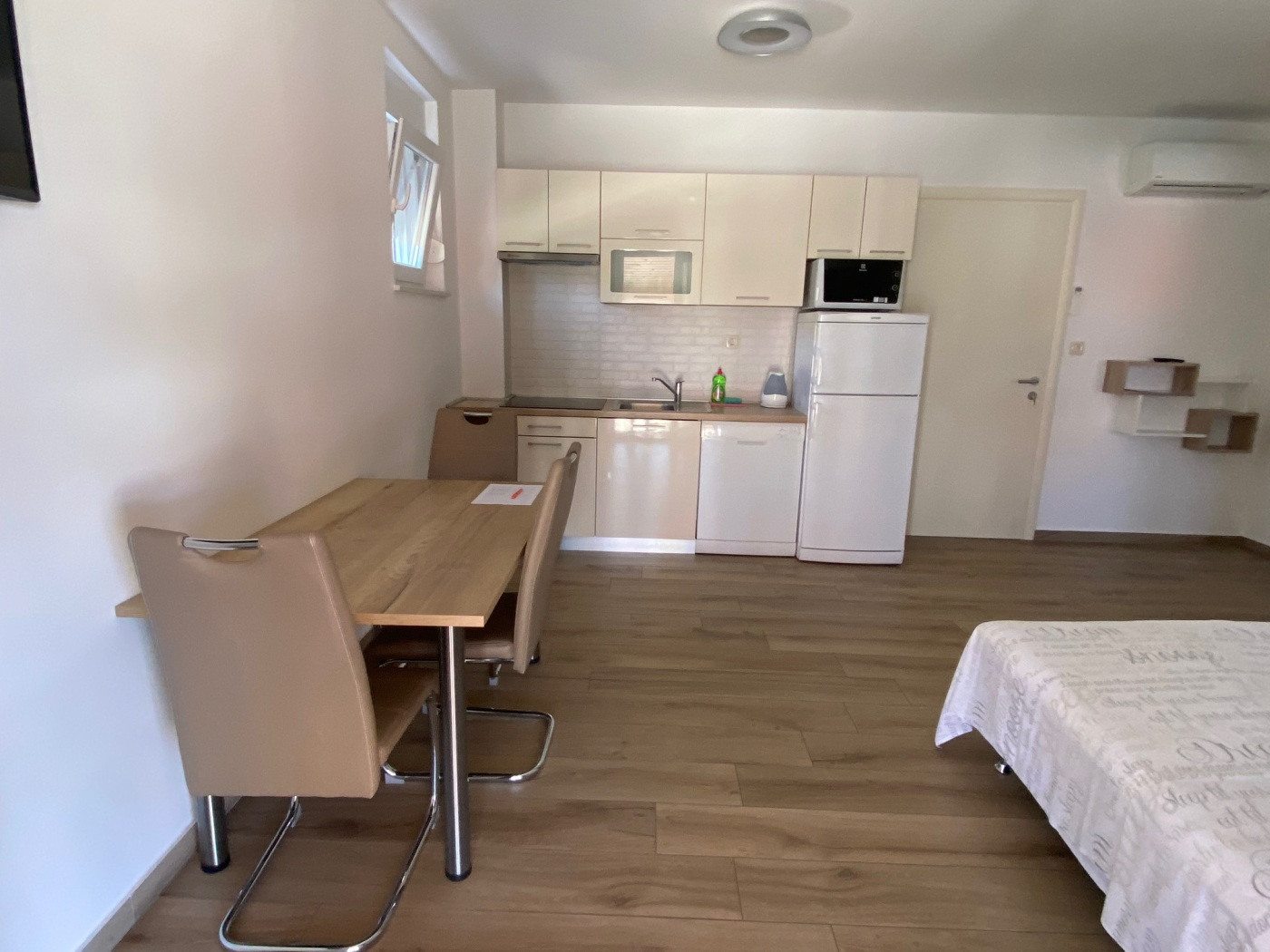 Cet appartement lumineux au rez-de-chaussée à Punat sur l'île de Krk offre 40 m² d'espace pour jusqu'à 4 invités et est idéal pour les couples ou les petites familles. Le logement dispose d'une chambre confortable avec un lit double, d'une salle à manger avec une cuisine entièrement équipée et un canapé-lit, ainsi qu'une salle de bain moderne avec douche. La cuisine comprend un lave-vaisselle, un micro-ondes, une bouilloire, un grille-pain et une cafetière filtre. La climatisation et le Wi-Fi assurent un confort agréable pendant votre séjour.