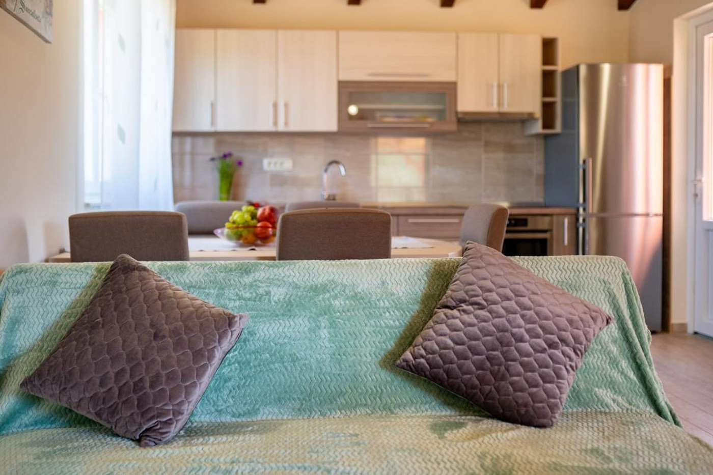 La maison offre un espace de 50 m² pour jusqu'à quatre personnes et combine le charme rural avec le confort moderne. Elle dispose d'une chambre avec un lit queen size ainsi qu'un canapé-lit confortable dans l'espace de vie. Le point central est la terrasse spacieuse avec un jacuzzi, où vous pouvez vous détendre après une journée à la mer et profiter de la vue sur la verdure.
