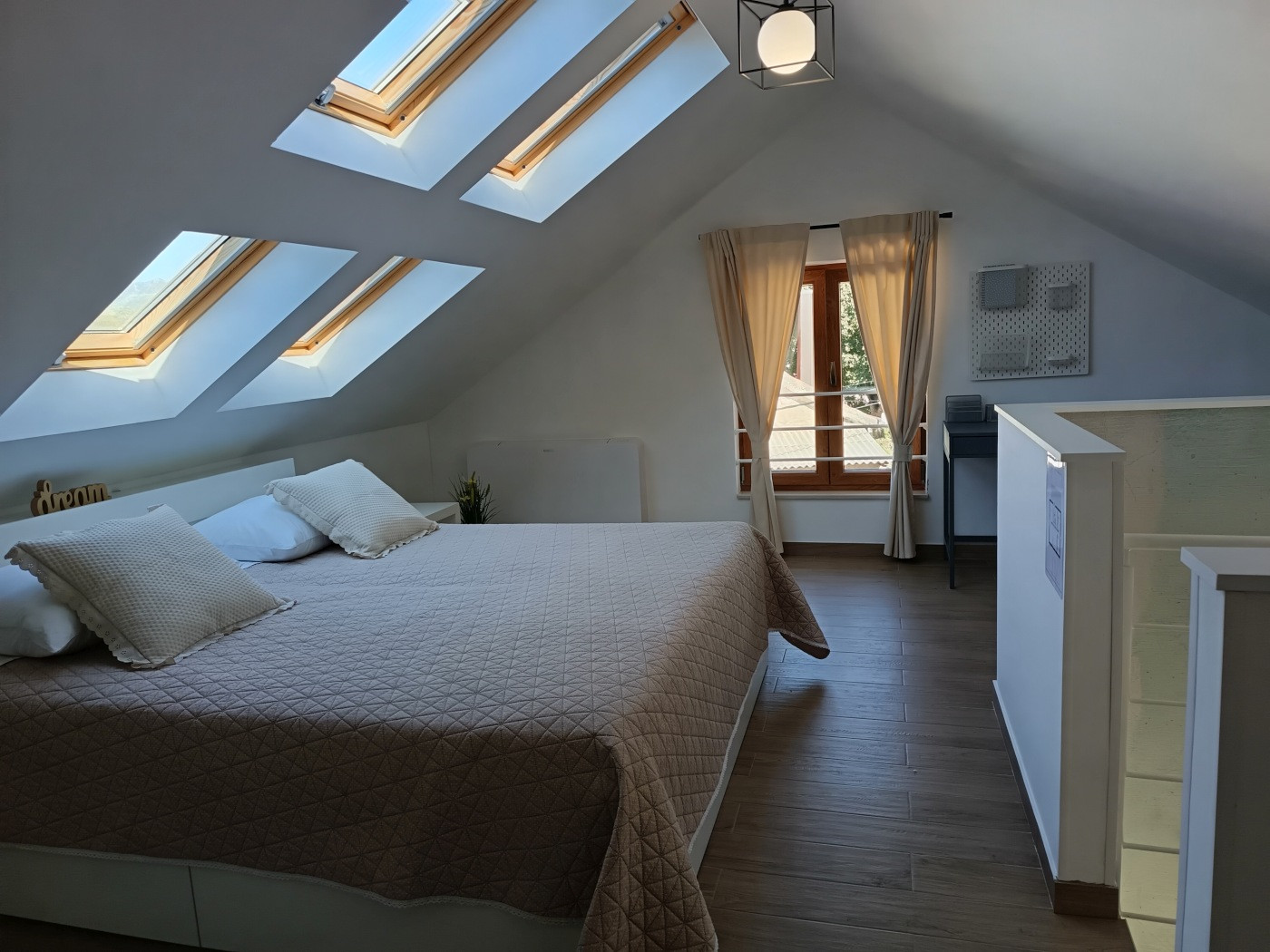 2ème étage : se trouve une véranda dans laquelle se trouvent une chambre, une salle de bain avec baignoire de massage et un espace de travail avec une chaise et un bureau, elle peut donc également être considérée comme un espace séparé.