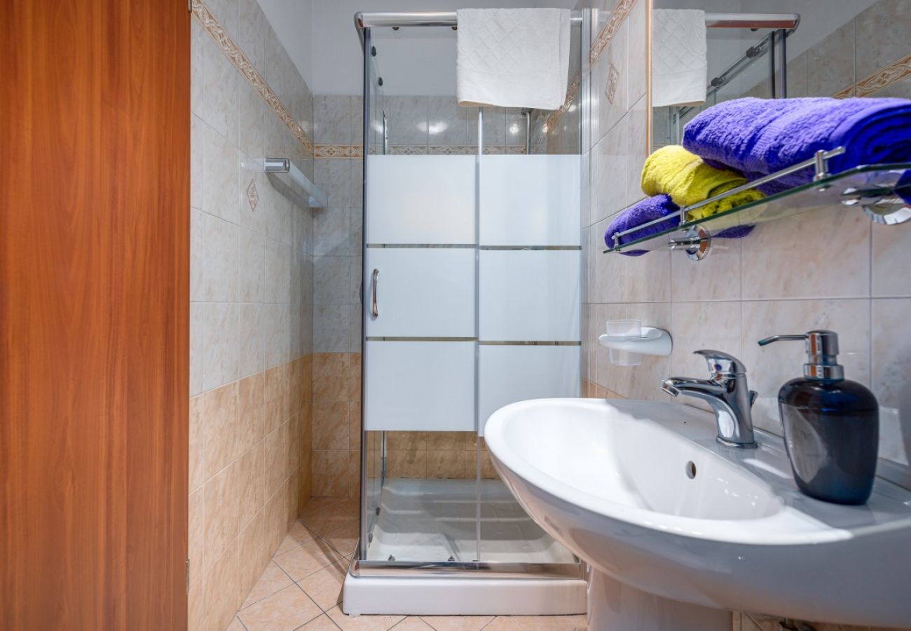 L'appartamento dispone di due camere da letto accoglienti con due letti matrimoniali e un ulteriore posto letto sul divano. L'aria condizionata nel soggiorno garantisce temperature piacevoli, mentre il Wi-Fi vi mantiene connessi con il mondo esterno.