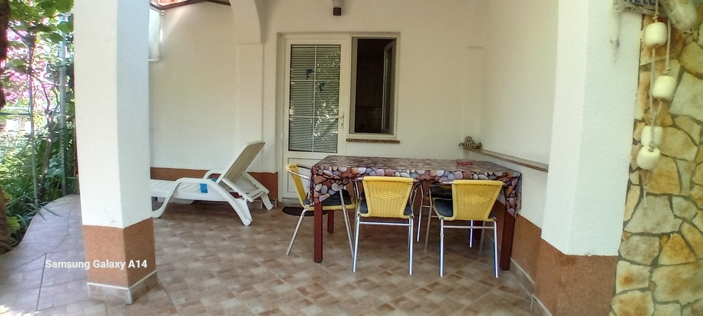 L'area esterna curata invita al relax con cortile e uso del giardino, terrazza, doccia esterna e possibilità di barbecue. Un posto barca è disponibile su richiesta e un parcheggio privato si trova direttamente accanto alla casa.
