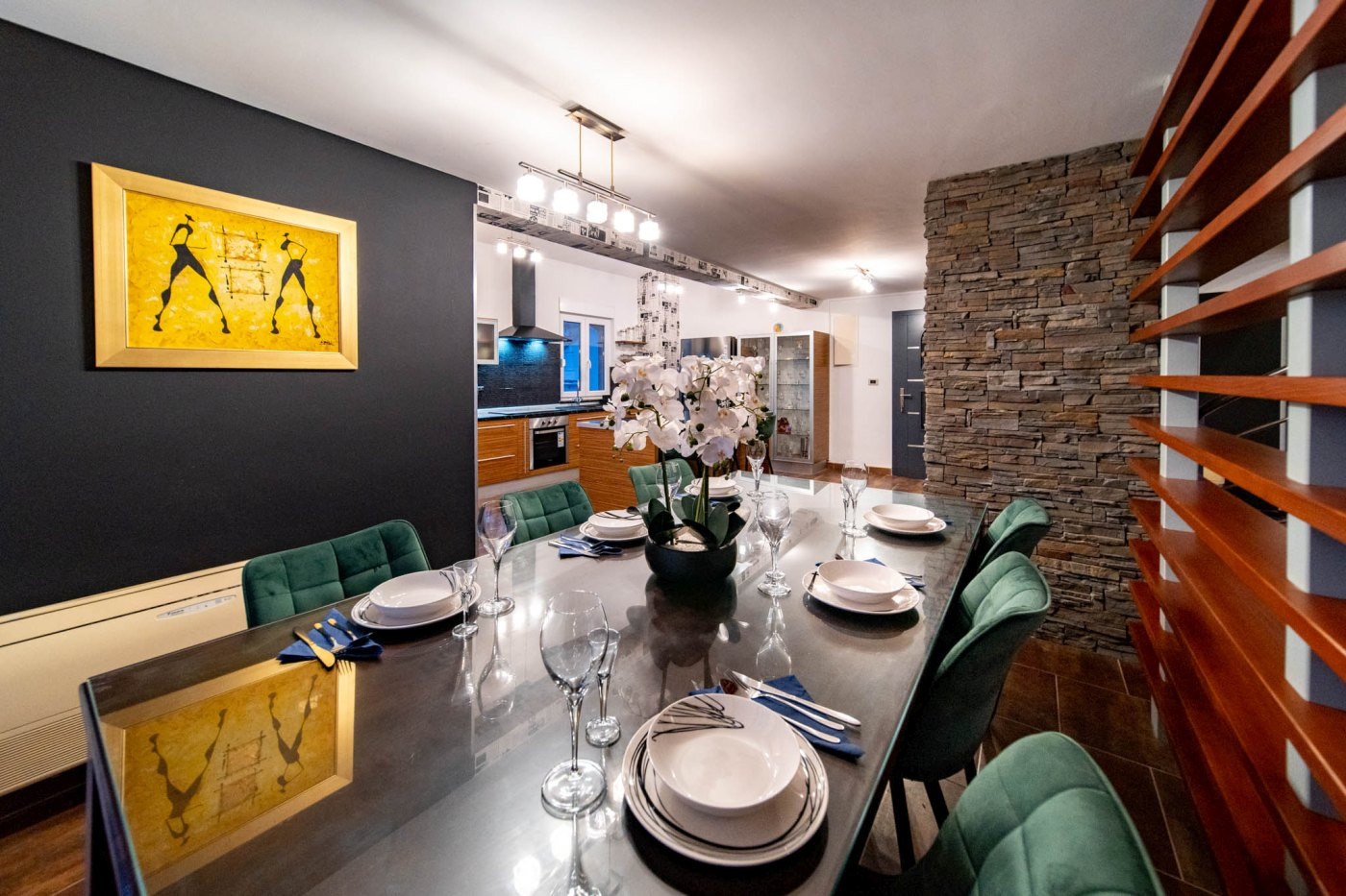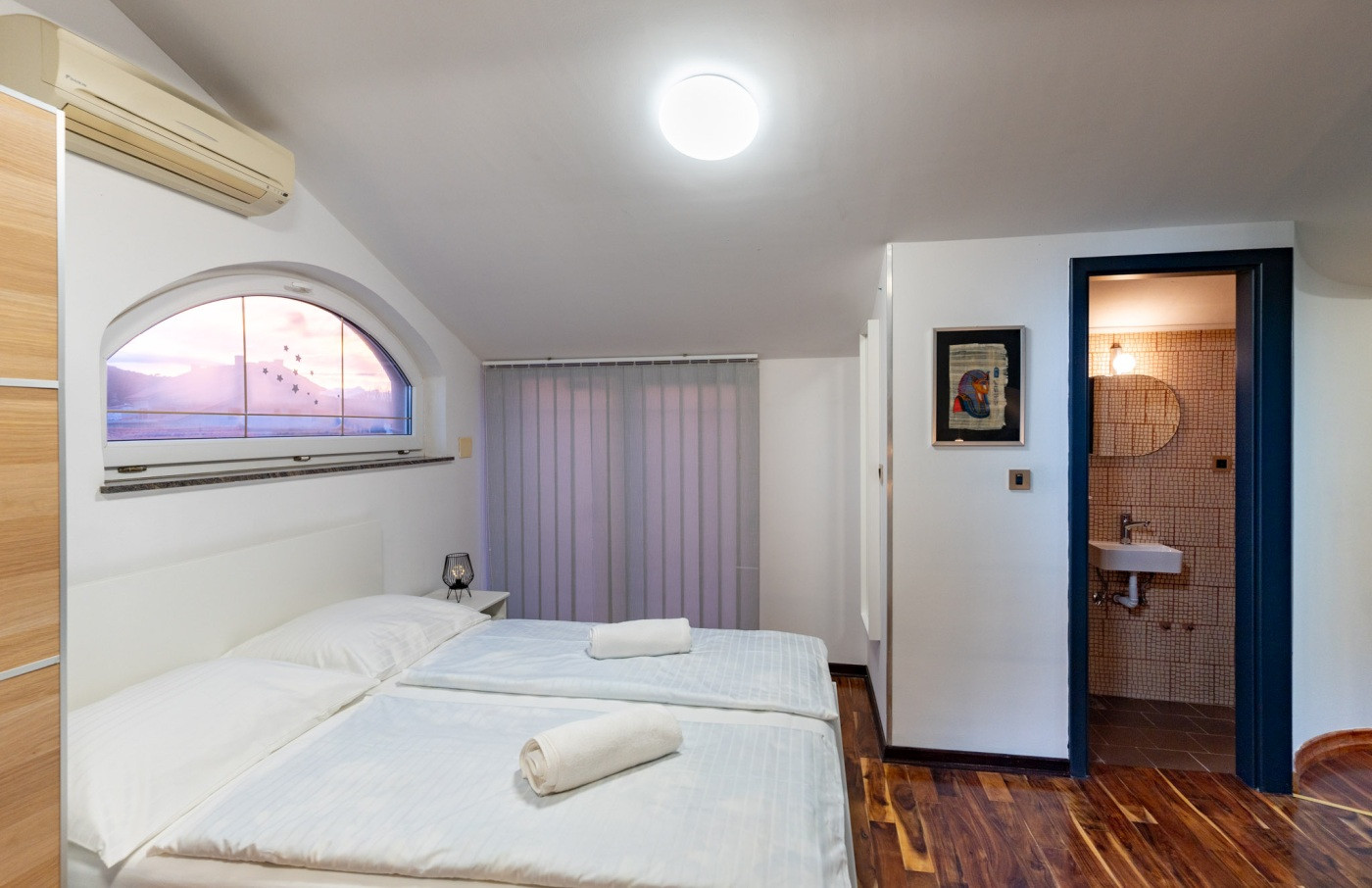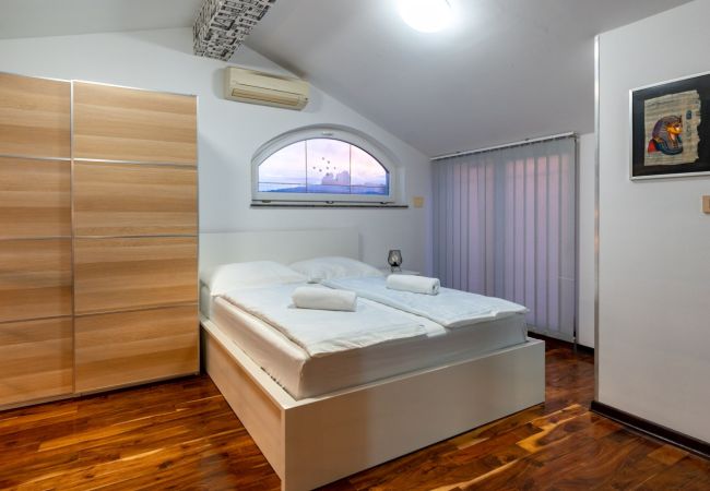 Questo luminoso e spazioso appartamento al primo piano offre circa 120 m² di spazio sufficiente per fino a 10 persone - ideale per famiglie o gruppi che desiderano trascorrere una vacanza rilassante sull'isola soleggiata di Rab. L'appartamento dispone di tre camere da letto accoglienti con letti matrimoniali e singoli comodi, nonché due bagni moderni con doccia e vasca.