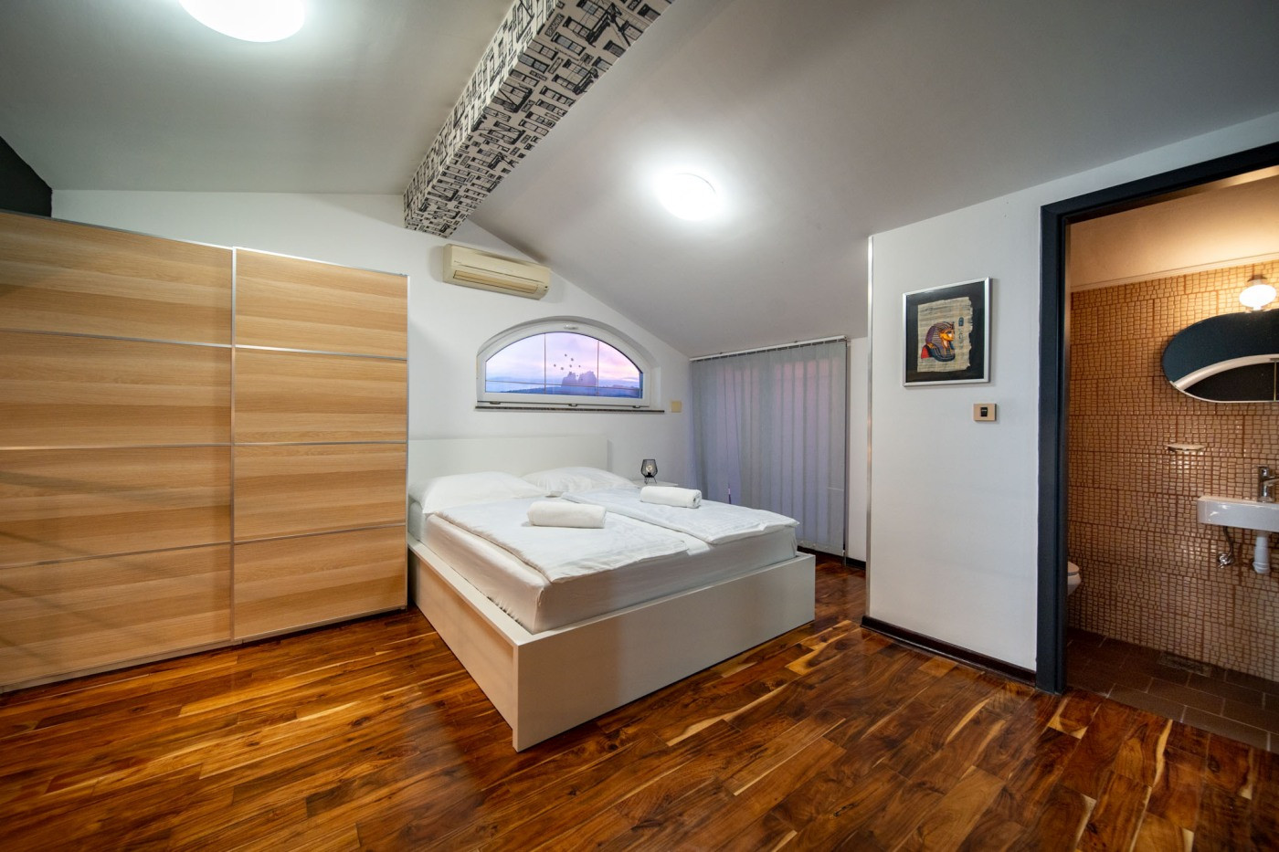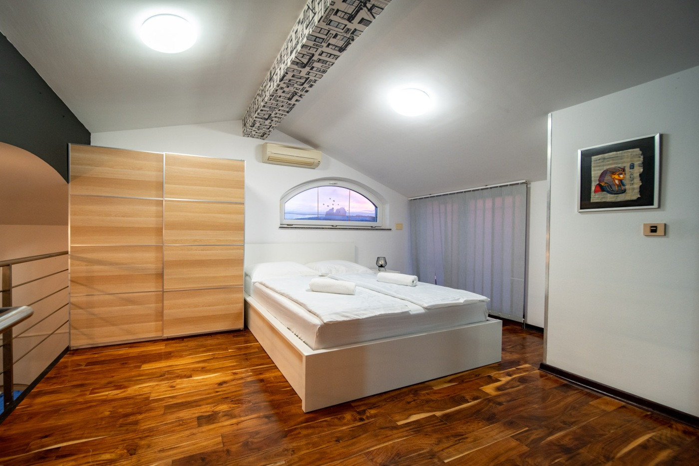 Ha casa recintata, 20 m² della terrazza, lavatrice, barbecue, accesso internet (wifi), balconi, aria condizionata, parcheggio all'aperto in in struttura, Televisione, tv satellitare.