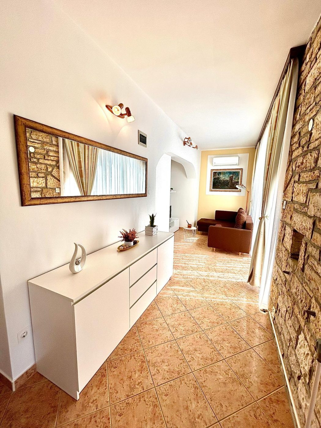 L'appartamento è ben attrezzato sia per i giorni caldi che per quelli più freschi. Un condizionatore d'aria garantisce temperature piacevoli in estate, mentre il riscaldamento centralizzato assicura comfort anche nella bassa stagione. WiFi e TV satellitare offrono ulteriori opzioni di intrattenimento.