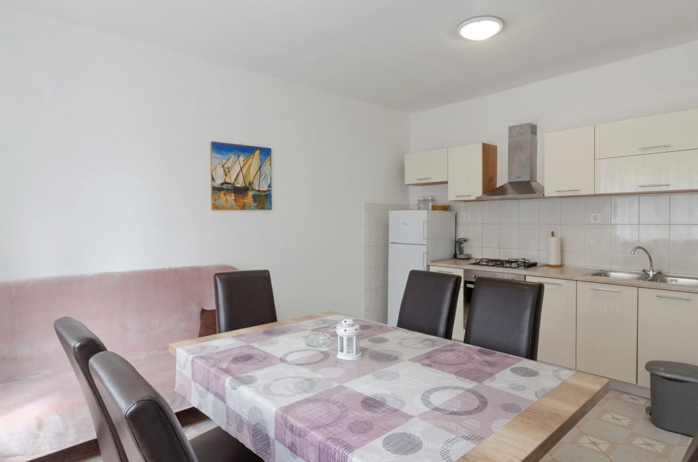 80-metrowe mieszkanie jest idealnie wyposażone do relaksującego wypoczynku. Możecie cieszyć się ogrzewaniem centralnym i klimatyzacją, a także darmowym Wi-Fi. W pełni wyposażona kuchnia posiada wszystkie niezbędne urządzenia jak lodówka, zamrażarka, piekarnik i kompletny zestaw naczyń, dzięki czemu bez problemu można wspólnie gotować.