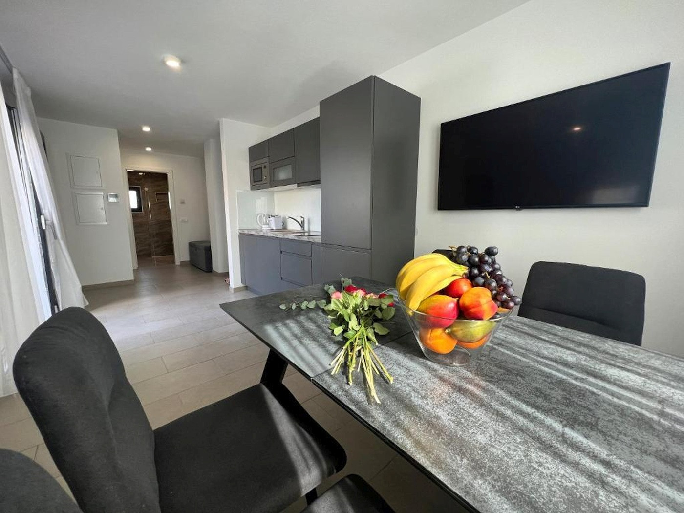 W centrum uwagi jest jasna, przyjazna atmosfera mieszkania. Duże okna wpuszczają dużo światła dziennego i tworzą zapraszający nastrój. Dzięki klimatyzacji możesz cieszyć się przyjemnymi temperaturami nawet w gorące letnie dni, podczas gdy centralne ogrzewanie zapewnia komfort w chłodniejszych porach roku. Oczywiście do dyspozycji jest bezpłatne Wi-Fi, dzięki czemu pozostajesz elastyczny nawet podczas wakacji. Telewizor z telewizją satelitarną uzupełnia wyposażenie dla relaksujących wieczorów.