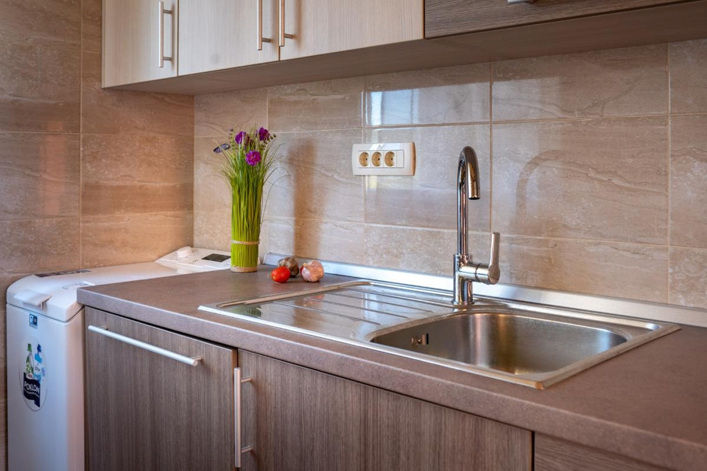 W pełni wyposażona kuchnia z zmywarką, piekarnikiem, lodówką, ekspresem do kawy i czajnikiem nie pozostawia niczego do życzenia. Do dalszego wyposażenia należą klimatyzacja, pralka, grill, telewizja satelitarna oraz dwa prywatne miejsca parkingowe na ogrodzonym terenie.