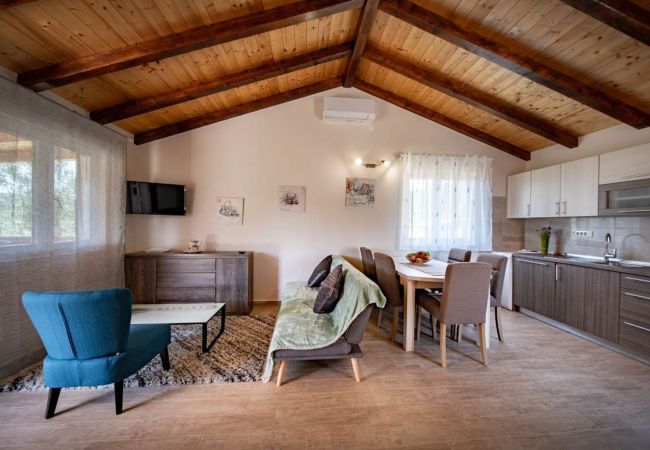 Dom wakacyjny w Mundanije z ogrodem, jacuzzi, tarasem, klimatyzacją i pralką (5238-1)