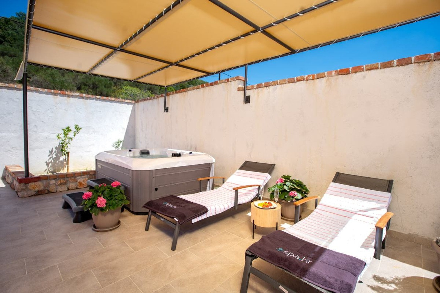 На прекрасном острове Раб, недалеко от Супетарской Драги, расположен этот с любовью обустроенный дом для отдыха – место, где тело и душа находят покой. Окруженный старыми оливковыми деревьями, ароматом инжира и свежим морским воздухом, он является убежищем, наполненным спокойствием, солнцем и средиземноморской легкостью.