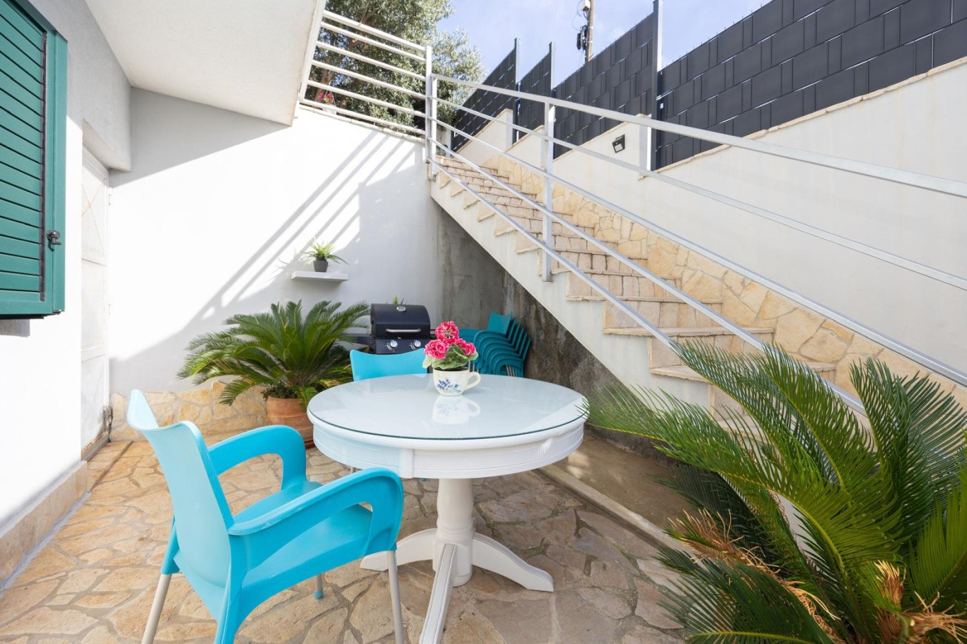 Крытый балкон со столом и стульями предлагает великолепный вид на сверкающее море и располагает к отдыху. Жилье особенно подходит для семей, по запросу может быть предоставлена детская кроватка.