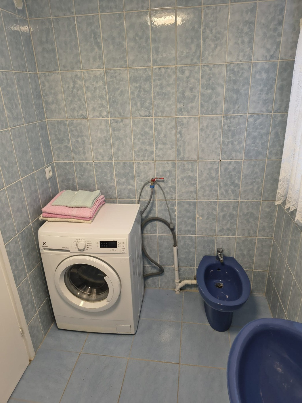 Ванная комната просторная и оснащена ванной, туалетом, биде, писсуаром, а также отдельной стиральной машиной. Квартира имеет отдельный вход.