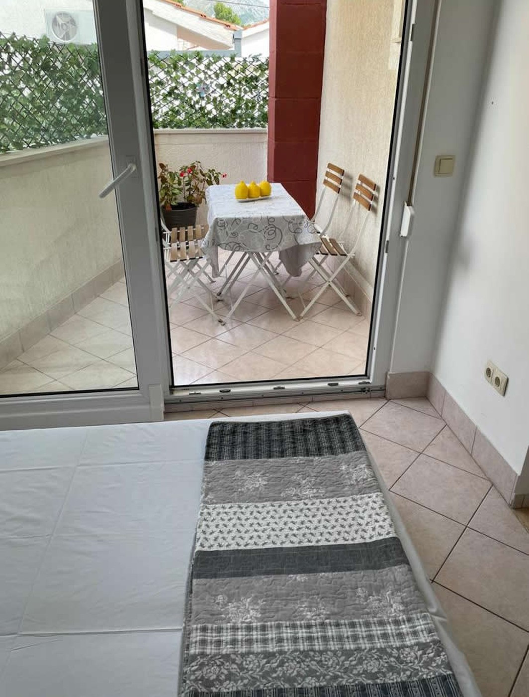 BALKON (Balkon): Süd - 5 m2, Zugang über - Küche, Wohnzimmer, Esszimmer, überdacht, Meerblick, Nutzung von Balkon/Terrasse/Loggia - private Nutzung, Tisch und Stühle - für 2 Personen