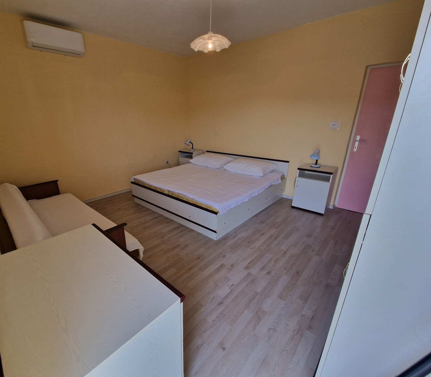 Die Unterkunft verfügt über zwei Schlafzimmer, jeweils mit Doppelbett, eines der Zimmer zusätzlich mit einem Einzelbett. Beide Schlafzimmer sind mit Kleiderschrank und Nachttisch ausgestattet. Das Badezimmer verfügt über Badewanne, WC, Waschbecken, Spiegel und ein Fenster.