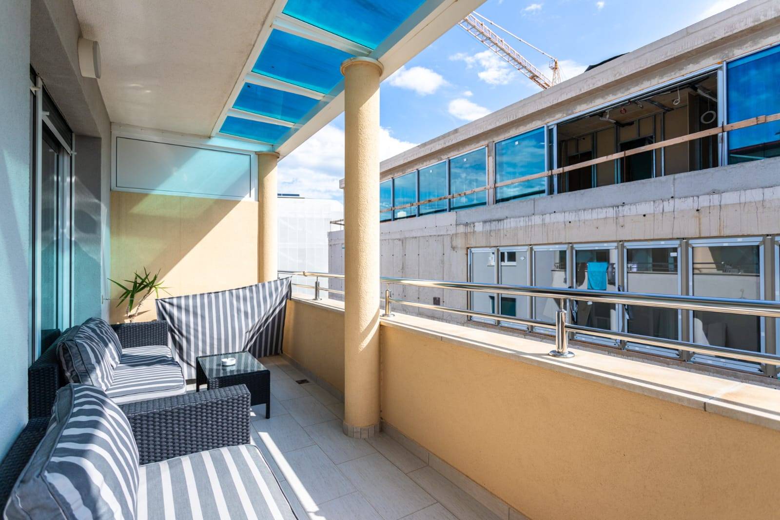 Hier wird 1 Apartment für 4 Personen vermietet. Das Apartment verfügt über Wi-Fi Internet, einen Parkplatz, SAT-TV, Klimaanlage, Waschmaschine, einen möblierten Balkon, eine Küche oder Küchenzeile und ein privates Badezimmer.